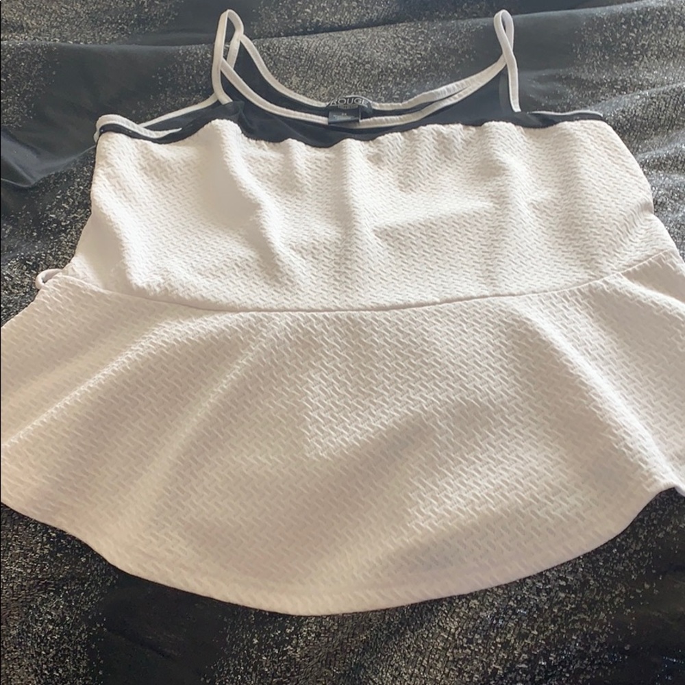 White and black top with flare and bottom
