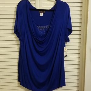 Blouse #1 is galaxy blue and blouse #2 is black. Size 3X. 98% rayon, 3 % spandex.