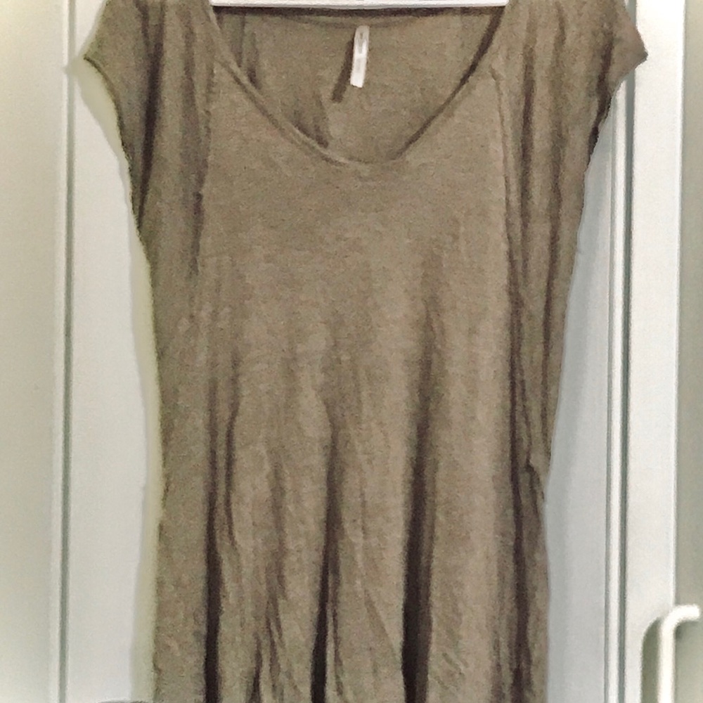 Distressed top size large. Not sure of brand. Will send this item free if you make any purchase. Just ask for it!