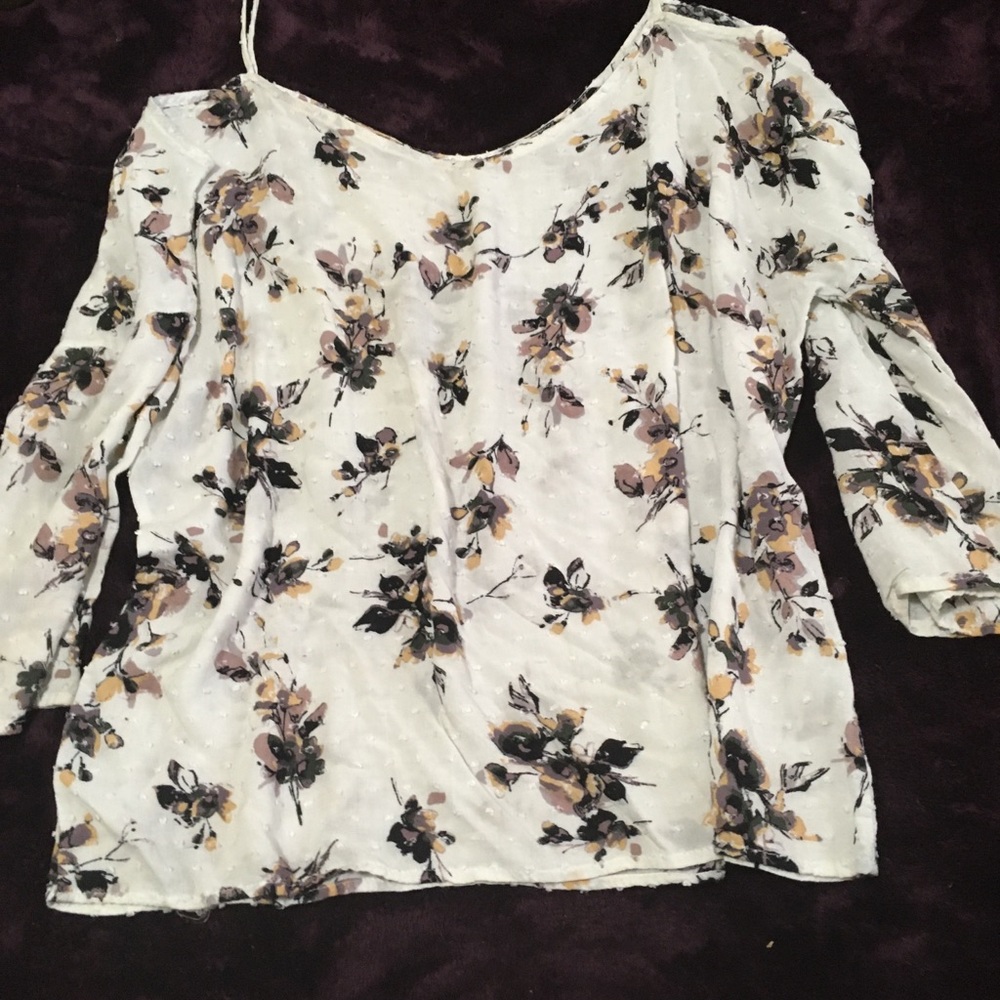 Off the shoulder flowy shirt. Very soft and comfy. Size Large. Worn once. No signs of wear.