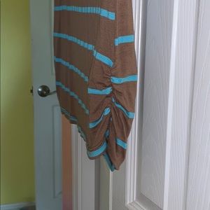 Loose on top but fitted on waist. Side ruffled details on both sides to make a smaller silhouette.