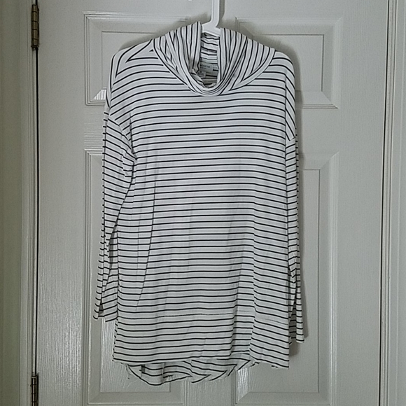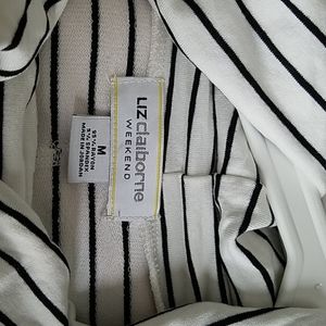 95% rayon 5% spandex. White with black stripes. Very clean and soft.