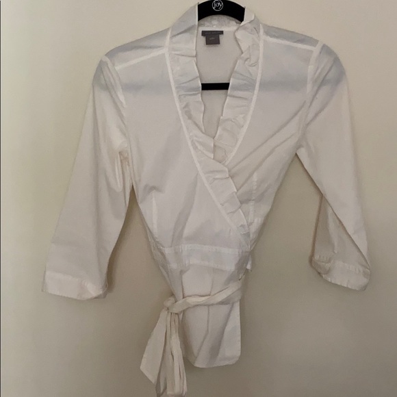 White ruffle collar wrap top