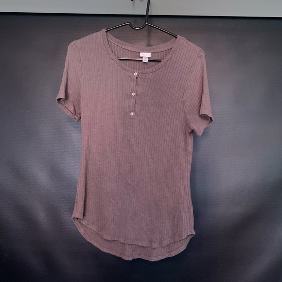 Short sleeve top. Color is a grayish brown. Very soft