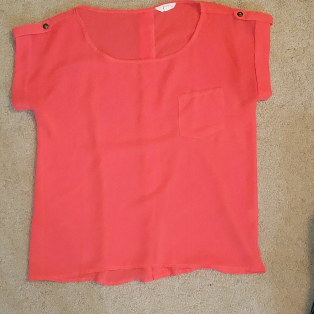 Sheer pink top with button down back