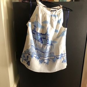 Vineyard vines, Kentucky derby collection. Gold detailing on the straps, lined. Blue detailing on the shirt resembles the derby race. Greta for the summer