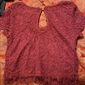 Burgundy cropped top with lace. Good condition size medium from rue 21
