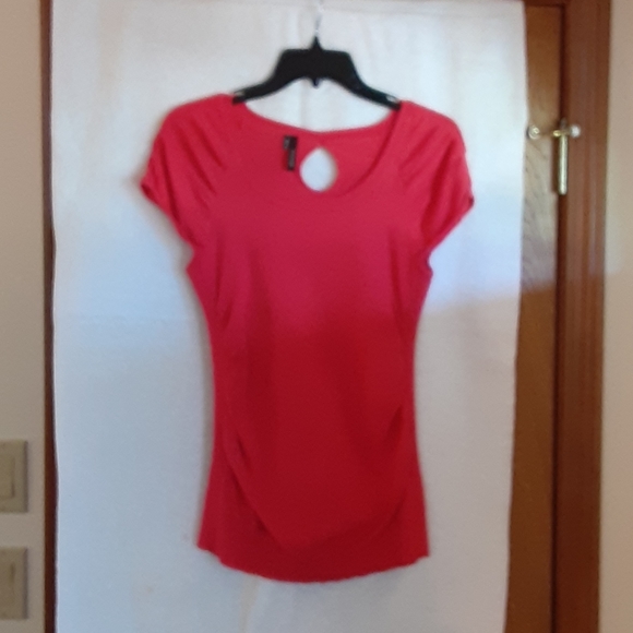 Red side pucker peek hole back cap sleeves