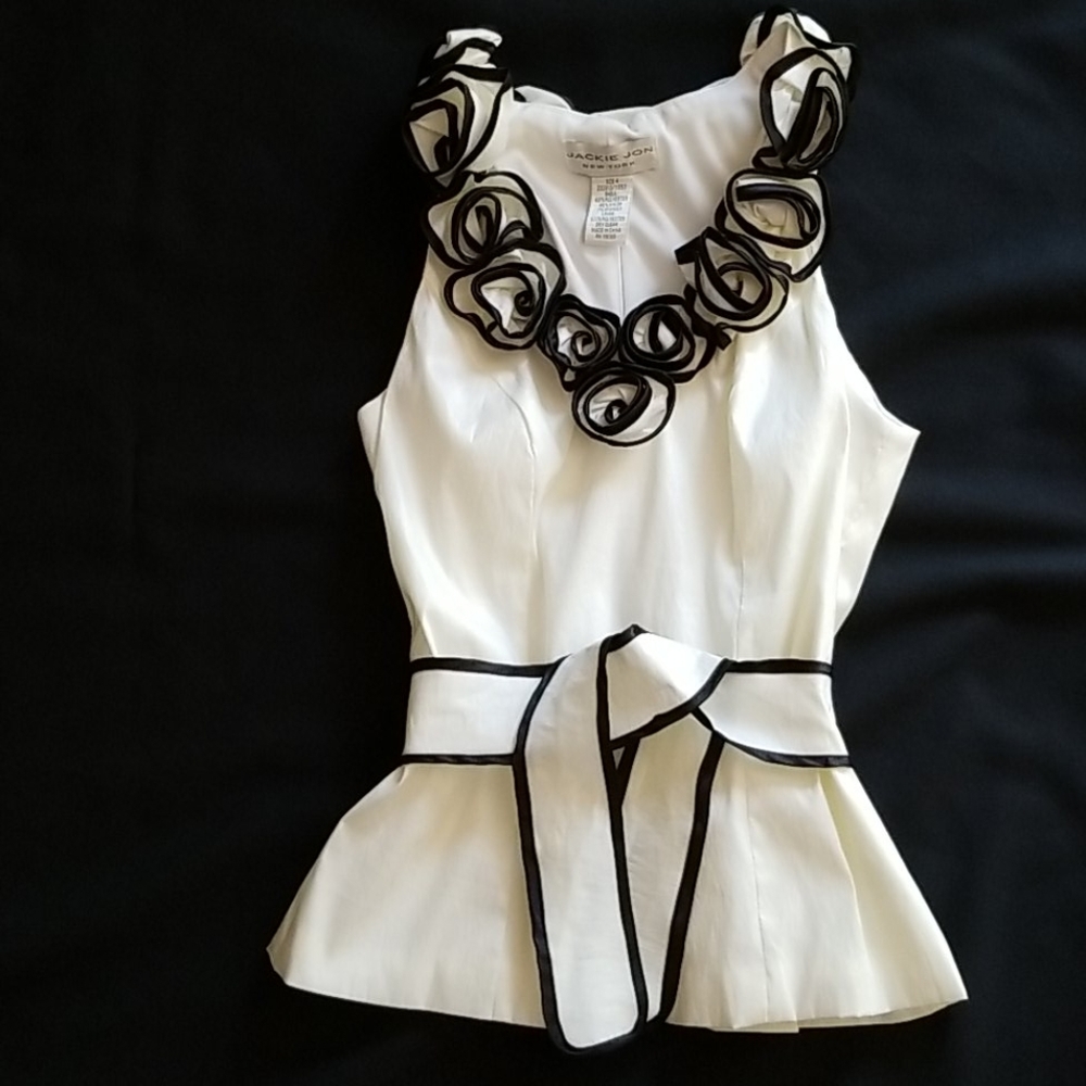 Rosette studded Jackie Jon top. So cute and ready for a party! Fully lined and wrap belt.