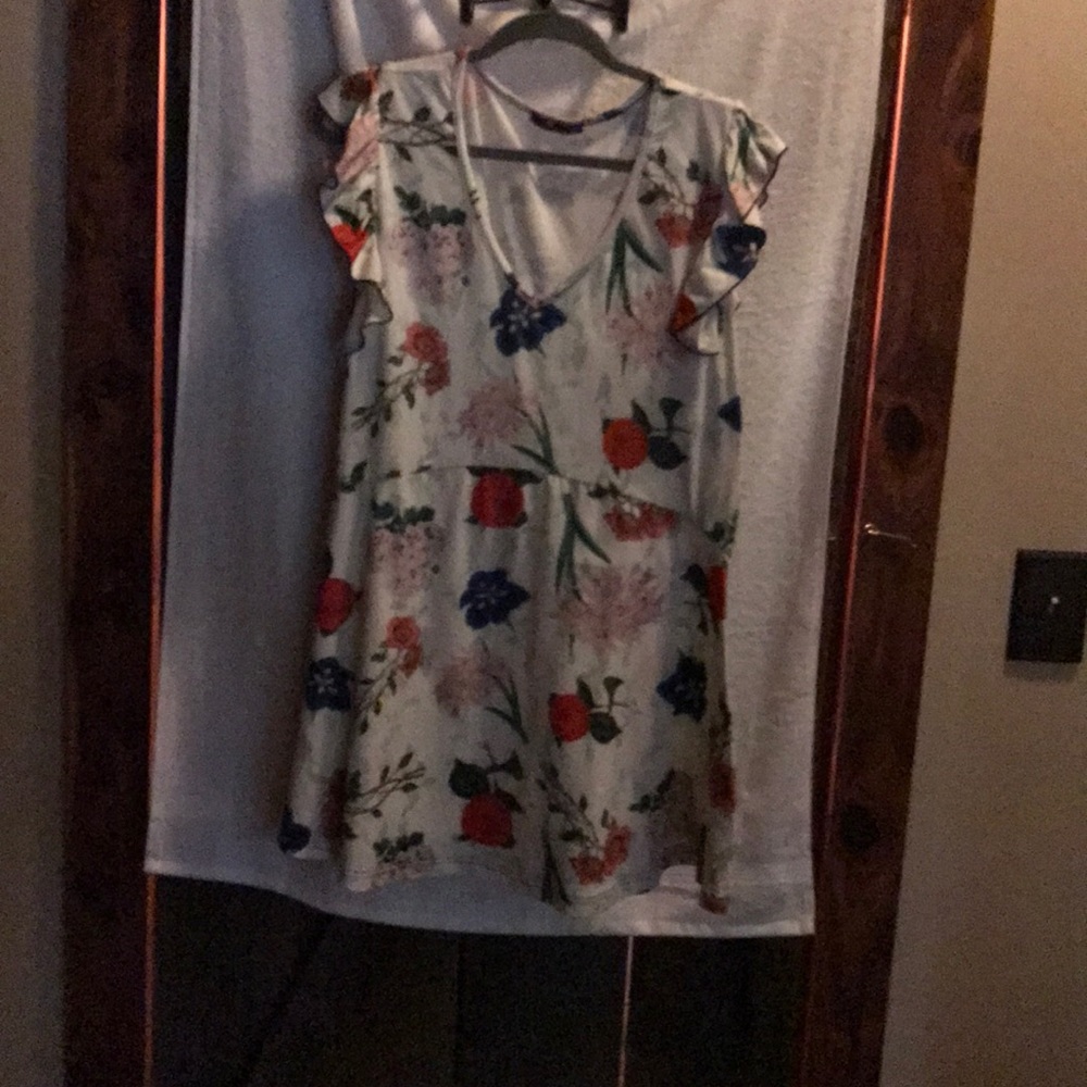 White floral tunic with ruffle sleeve