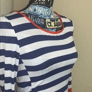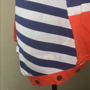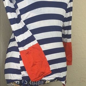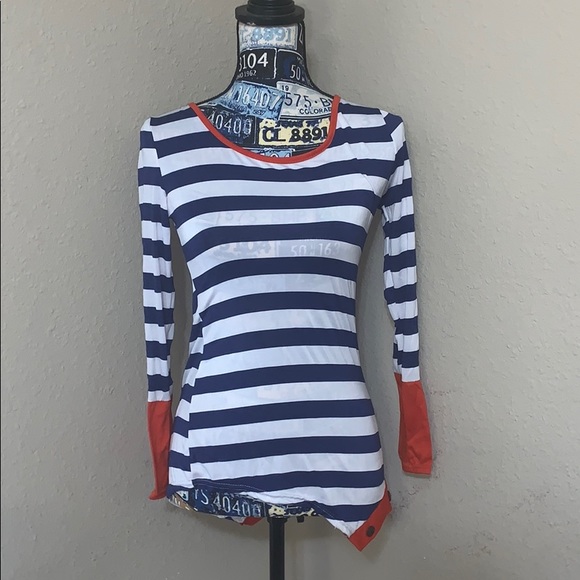 Blue orange and white long sleeve top w accessory buttons