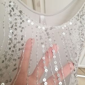 Sleeveless, sequin silver/gray in color