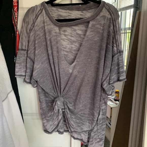 We The after loungey top in a charcoal gray! Very soft and thin material- runs big and looks great tied up or down (if you want more of a large tee look) worn once!