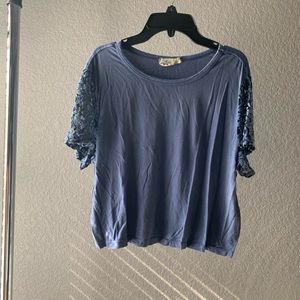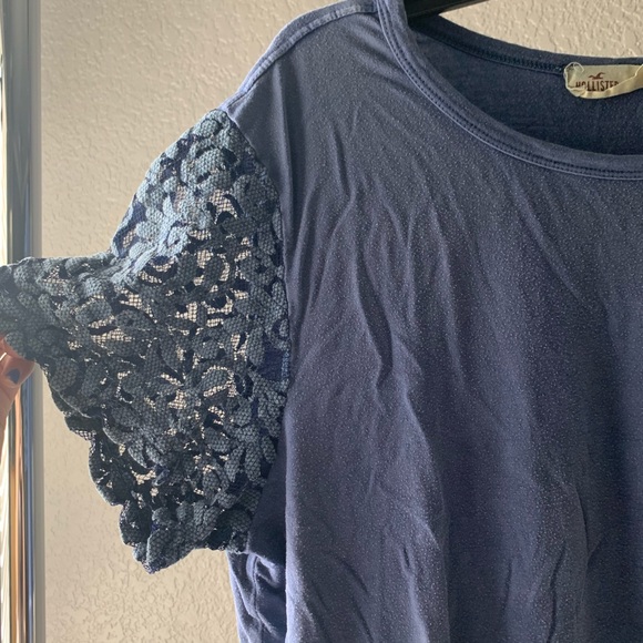Blue top with lace sleeves from hollister! Super comfy and has a nice flowy fit. Labeled size large but can fit xs- large depending on desired fit. Message me with any questions or offers :)