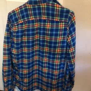 Cute hollister flannel. Orange green and blue. Says it’s a small but runs bigger.