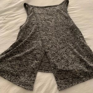 Grey and black tank with slit at the bottom of the back side