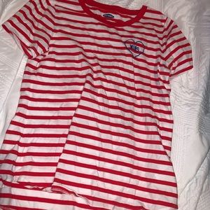 red and white striped top