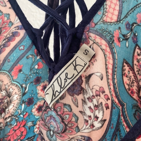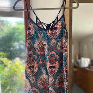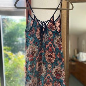 Floral short dress or long top. Ties up in the back.