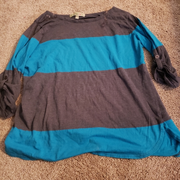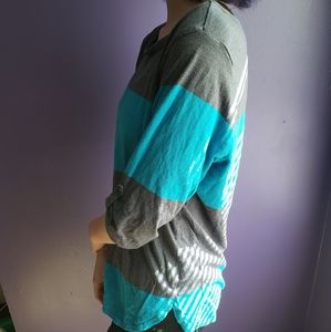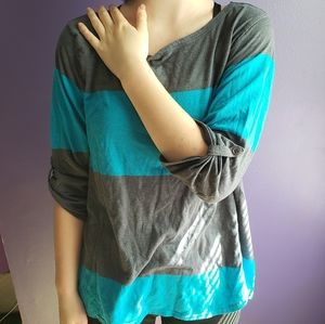 Gray & cyan blue, horizontal stripes, soft, cotton.