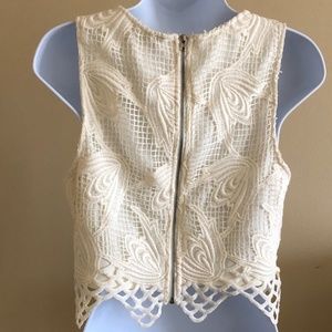So pretty lacy top, nicely lined, with gorgeous lattice detail! Zips at back.