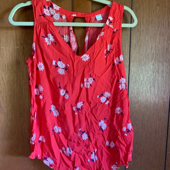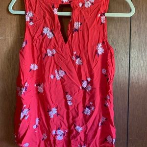 Red top with flower print