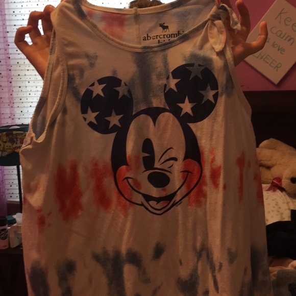 Red white and blue bow on the arm tank top Mickey on the front open on the bottom of the back