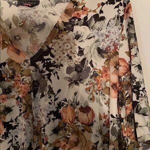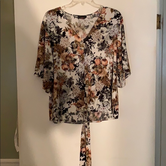 Cute top with flower print Size-2x Color cream and brown