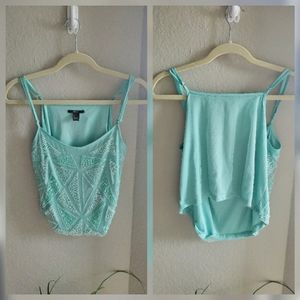 Teal jeweled tank top has only been worn twice. The perfect tank top to glam up your closet and next outfit!