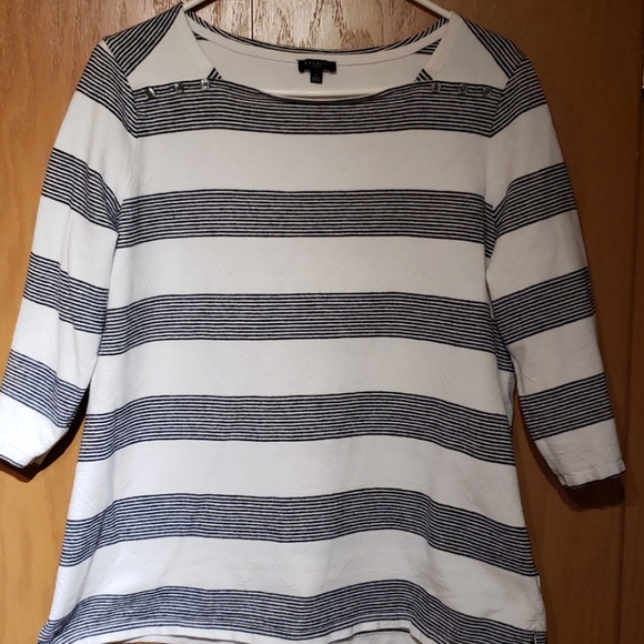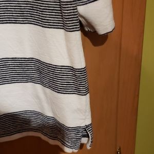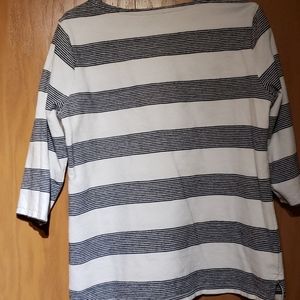 Navy blue and white cotton 3/4 sleeve top. In very good condition.