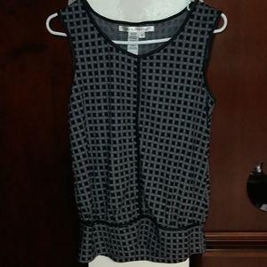 Ladies size small sleevless diamond checkered black and white pattern under blazer top. Great for a business casual suit.