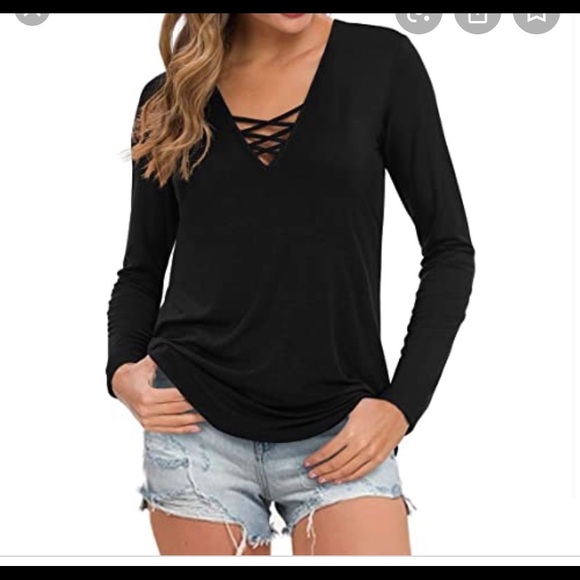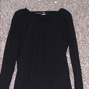 Long, tight, black long sleeve shirt, crossed in front, soft