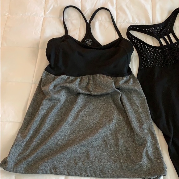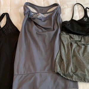 4 yoga tank tops various sizes. See photos. Gently worn. No damage or stains.