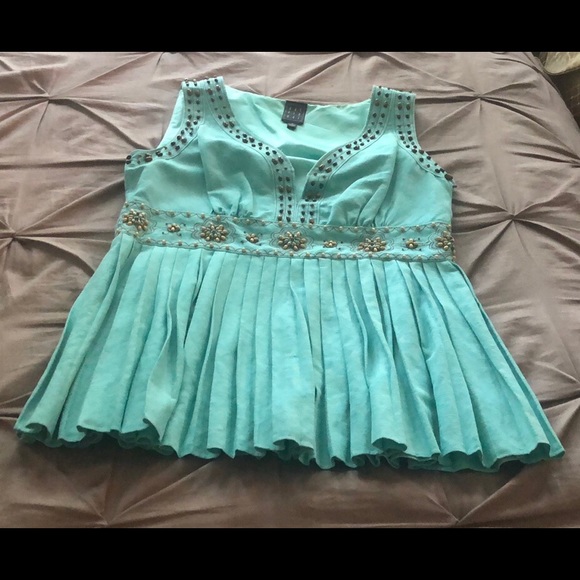 Sleeveless linen top with pleats, decorative shells on front, v-neck, lined, only worn twice. Perfect to wear with jeans! So cute!