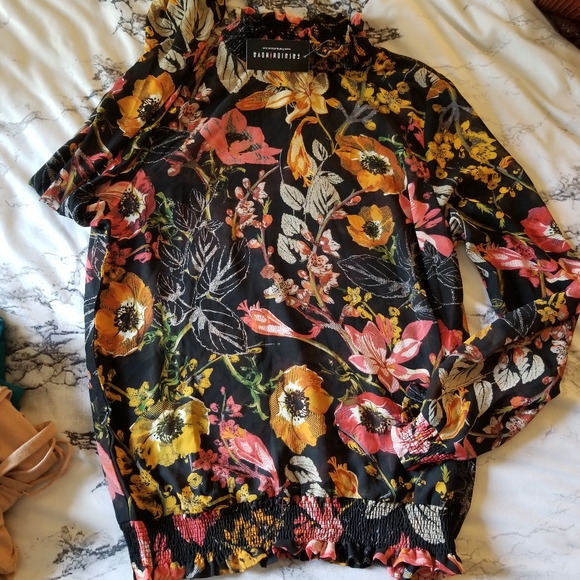 Fashionnova top/ scrunch neck and sleeves