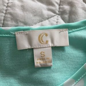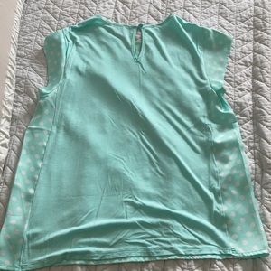 Mint colored chiffon/ silky blouse with white polka dots. Work appropriate. From Charming Charlie