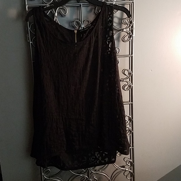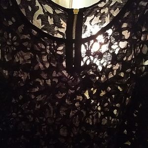 Black floral lace high low top. Stretchy material. Fits like a large. Bust approx 20" . Gold tone back zipper.