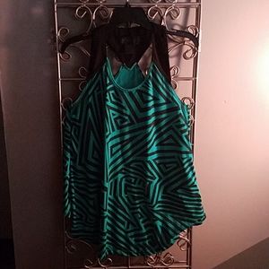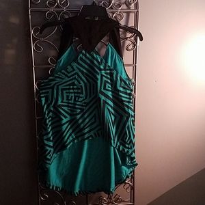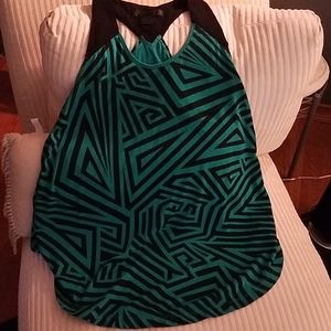 Kardasian cute geometric pattern sporty top. Low in front, high in back. 60% polyester, 40% rayon. Machine washable.