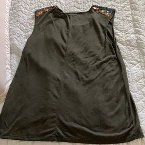 Forest green tee with sequin cap sleeves. Cute for the day or dress up to go out at night!