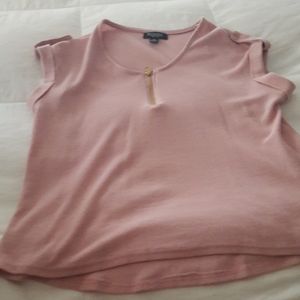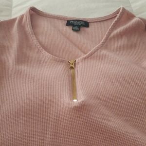 Mauve, half gold zipper, botton on the shoulders, has the same material look as warmers but light weight.
