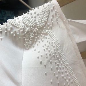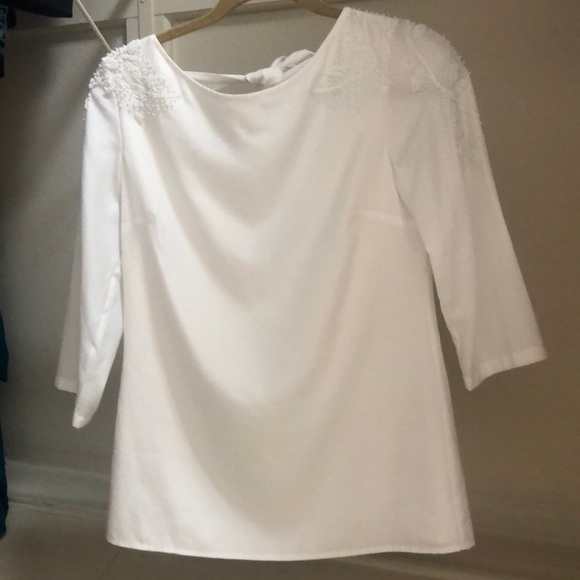 Nice top, bought from Poshmark but it did not fit. Has some loose threads, easy to fix. Beautiful back detail.