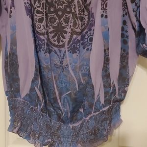 Boat school nexk, 3/4 sleeve, bubble top, with stretchy ruffle ends.