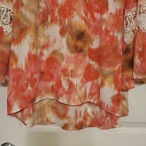 Bell sleeve floral blouse boat neck.