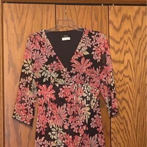 AGE Beautiful large flowers light weight top high midriff top with black under layer to prevent seeing through