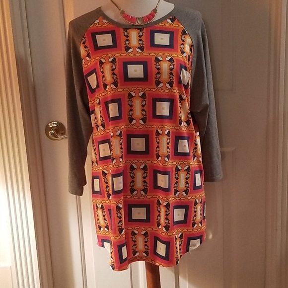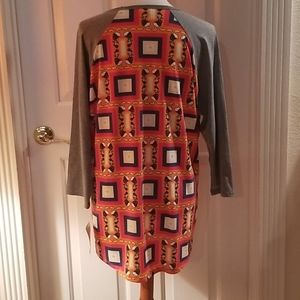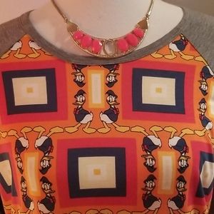Print-orange, cream, blue & red. Disney, Donald Duck, gray sleeves