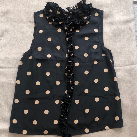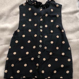 Polka dot top with ruffles 100 % Silk Buttoned in the back