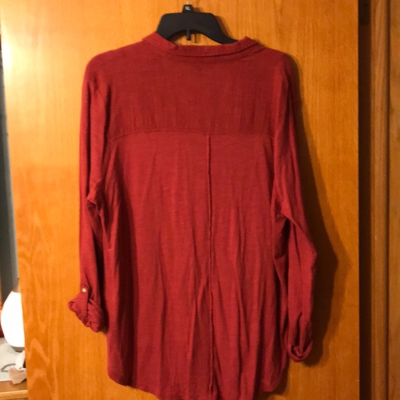 Burnt orange button down blouse with roll up button sleeves or straight arm Lucky Brand