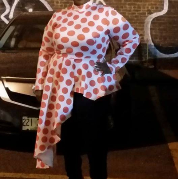 Side cascade Coral polka-dot shirt