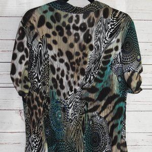 Cato animal print top. Short sleeve with elastic on upper cuff of sleeve. Size XL. Excellent condition!