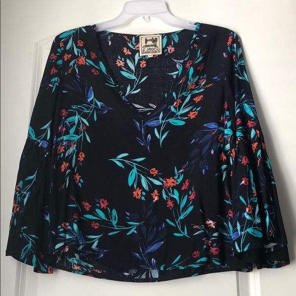 Cute black flowey top, only worn once. Front is cut pretty low but will look great with a bralette or cami.