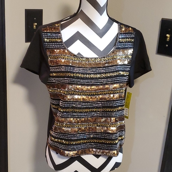 Beautiful top if you notice in the last pic that there's some sequins missing.